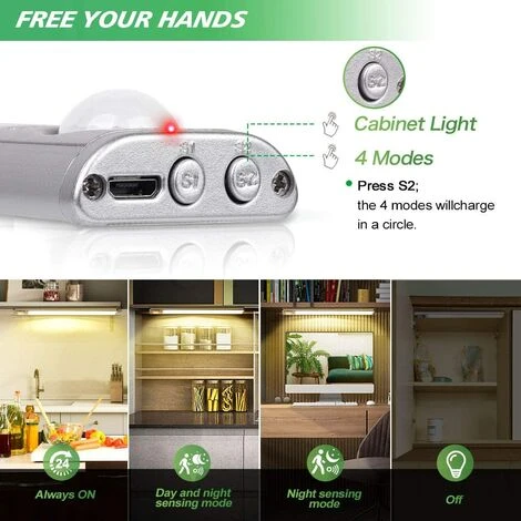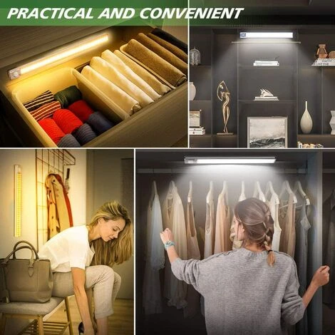 Convient à de nombreuses fins, très approprié pour la cuisine. Lumières de placard Allumez les lumières automatiquement lorsque vous rentrez chez vous la nuit. Lorsque vous ouvrez la porte, le détecteur de mouvement de la lumière du placard s’allume automatiquement.Par rapport aux lumières ordinaires, il n’y a pas de déchets.