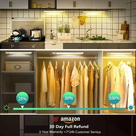 160 LED ultra-lumineuses, luminosité de 1 à 100 % 160 LED sont intégrées à l’intérieur de cette lampe d’armoire, tandis que la plupart des lampes d’armoire sur le marché en ont moins de 50. La luminosité est suffisante pour un usage quotidien et vous permet de l’utiliser. Avec 160 LED, un seul détecteur de mouvement pour éclairage de placard suffit, vous n’avez donc pas besoin d’en acheter et d’en installer plus.