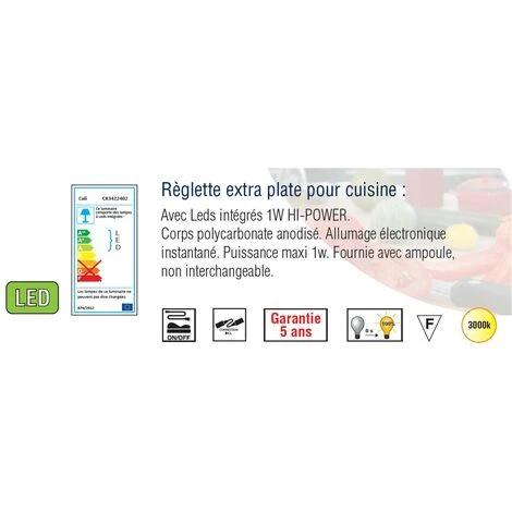 reglette led FLAT LED 3 X 1 W blanc + inter long 45,5cm