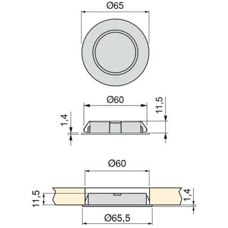 Emuca Applique LED pour meuble, diamètre 65 mm, à encastrer, aucun convertisseur nécessaire, lumière blanc froid, plastique, gris métallisé