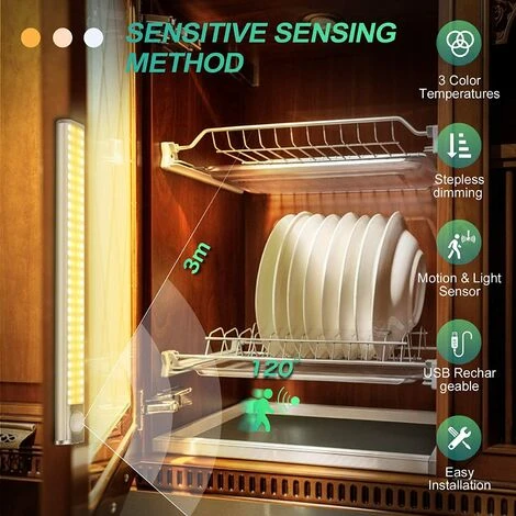 - [Haute sensibilité]: Lampe de Placard Détecteur de Mouvement très sensible. Si une personne est détectée la nuit ou dans l’obscurité, Lumière d’Armoire s’allume automatiquement dans la plage de détection de 3 m et 120 degrés. La lumière du meubleest un must pour un éclairage rationnel dans la maison