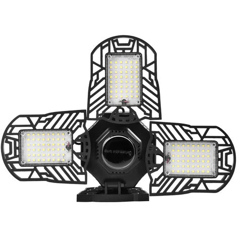 【Conception Humanisée】- Cette lampe garage ajoute une conception d’éclairage à 270°, chaque aile étant réglable à 90°, ce qui permet d’obtenir une courbe de répartition parfaite de l’éclairage, de sorte que vous puissiez ajuster la direction de la lumière en fonction de vos besoins, cela couvrira la zone de lumière à 360 °.