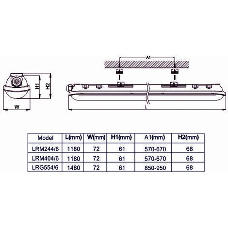 Réglette LED étanche 1200mm 24W (Equiv. 1x36W) 2880 LM Lumière du jour (6500K) IP65