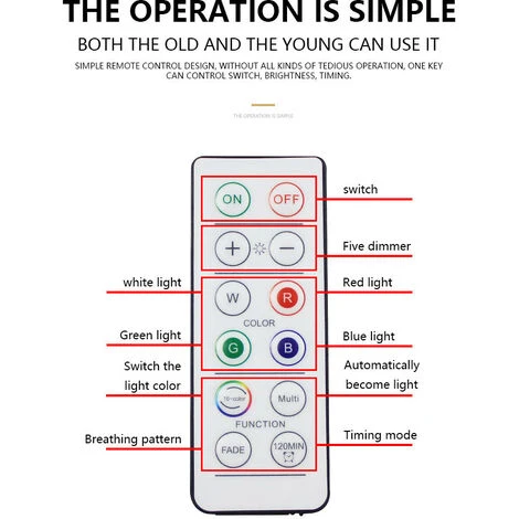 Cette télécommande RVB est également dotée d’une fonction de lumière blanche chaude et peut également être utilisée comme lumière blanche d’armoire commune.